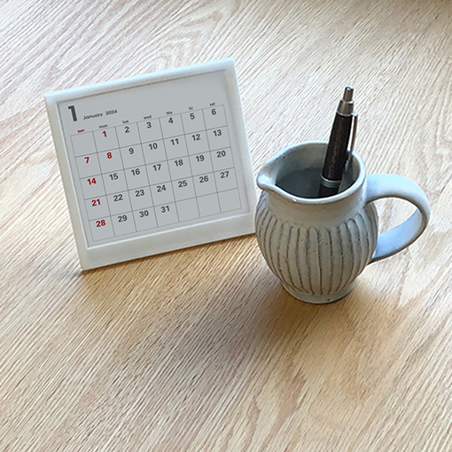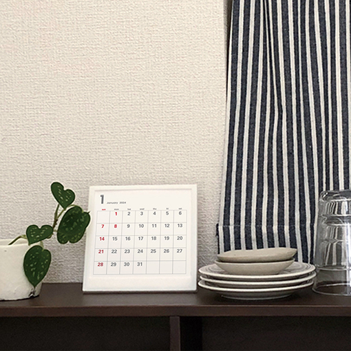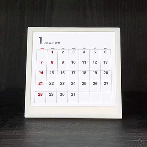 シンプルで見やすい おしゃれな白の卓上カレンダーです。